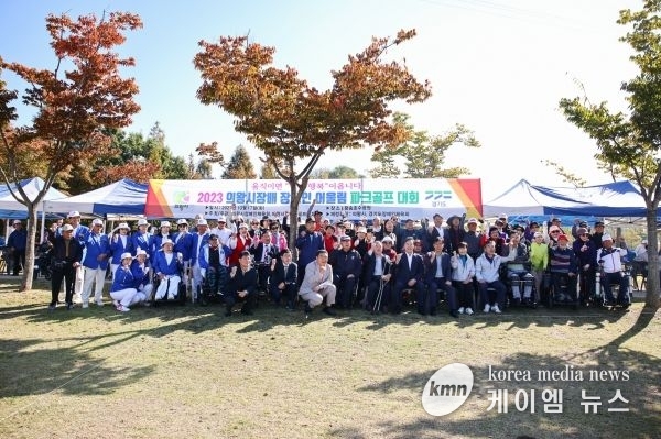 (케이엠뉴스) ‘2023 의왕시장배 장애인 어울림 파크골프대회’가 14일 왕송호수공원 잔디광장에서 개최됐다.