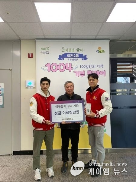 (케이엠뉴스) 양주시 회천2동은 지난 5일 관내 나라찬효태권도에서 지역 내 어려운 이웃을 위해 써달라며 이웃돕기 성금 약 28만원을 기부했다고 밝혔다.