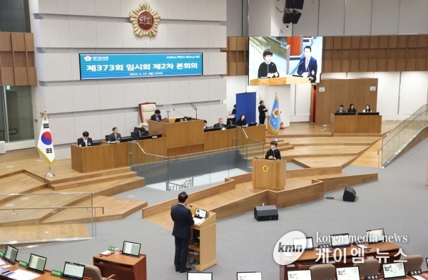 (케이엠뉴스) 경기도의회 교육행정위원회 김선희 의원은 19일 경기도의회 제373회 임시회 제2차 본회의 도정질문에서 ▲도 인사정책의 문제점 ▲도의원을 경시한 지역방문 ▲도내 민간 장애인오케스트라에 대한 지원 촉구와 직접 창단에 대한 우려 ▲대표도서관 태양광시설의 3세대 최신 기술 도입 촉구 ▲확대되는 늘봄학교와 유보통합에 대비한 준비사항 ▲학교구성원 사이의 갈등 완화 방안 등에 관해 질의했다.