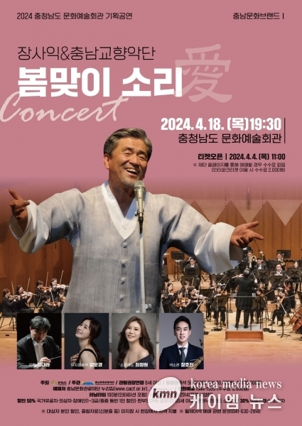 (케이엠뉴스) 소리꾼 장사익, 뮤지컬 배우 김보경, 소프라노 최정원, 색소포니스트 장호진이 음악으로 봄 소식을 전하기 위해 충남 내포신도시를 찾는다.