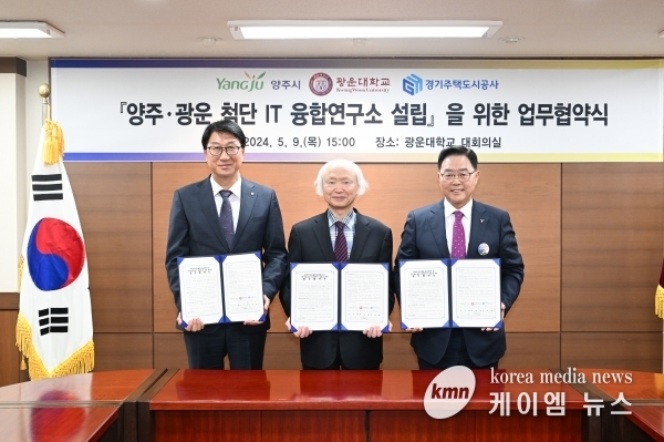 (케이엠뉴스) 양주시는 9일 광운대학교, 경기주택도시공사와 양주테크노밸리 활성화를 위한 ‘양주·광운 첨단IT융합연구소 설립 양해각서’를 체결했다.