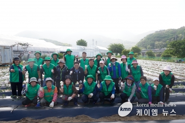 (케이엠뉴스) 강수현 양주시장이 지난 12일 장흥면 삼상리 소재 유휴농지에서 새마을지도자장흥면협의회 및 새마을부녀회가 이웃돕기 기금을 마련하기 위해 주관한 ‘고구마 심기 행사’ 현장에 방문하고 손을 보탰다.