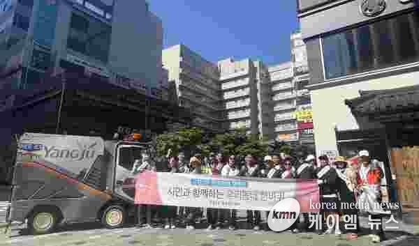 이날 이윤규 동장 및 직원, 통장 등 총 19명이 참여해 관내 옥정 중심상가의 담배꽁초, 플라스틱 컵, 캔, 유리병, 각종 오물 등 무단으로 투기된 폐기물을 수거하는 등 환경정화 활동을 시행했다.