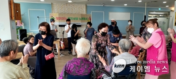 (케이엠뉴스) 의왕시 내손1동 지역사회보장협의체는 지난 22일 관내 요양시설인 ‘건강재활요양원’을 방문해 노래 재능기부 행사를 진행했다.