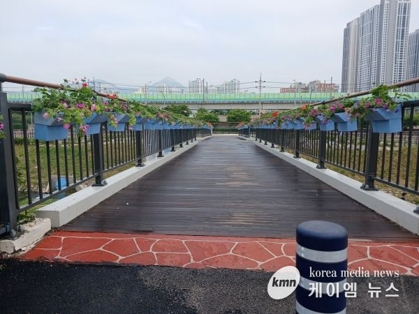 (케이엠뉴스) 구리시 갈매동 행정복지센터는 5월 24일 갈매동 카페거리에서 주민숙원사업인 ‘매화교 난간 화분 설치’ 공사를 진행했다.