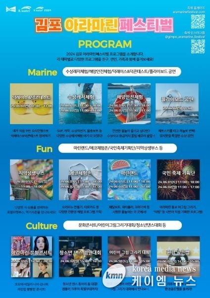 (케이엠뉴스) 김포시기 관내 관광지를 쉽게 돌아볼 수 있도록 소개하는 모바일 스탬프투어인 ‘올댓 스탬프’와 연계해 2024 김포 아라마린 페스티벌 방문 인증 이벤트를 개최한다.