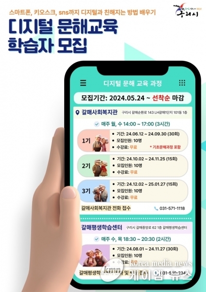 (케이엠뉴스) 구리시는 교육부 공모 ‘2024년 성인문해교육 지원사업’에 선정됨에 따라 오는 6월부터 2025년 1월까지 ‘2024년 디지털 문해교육’을 운영한다.