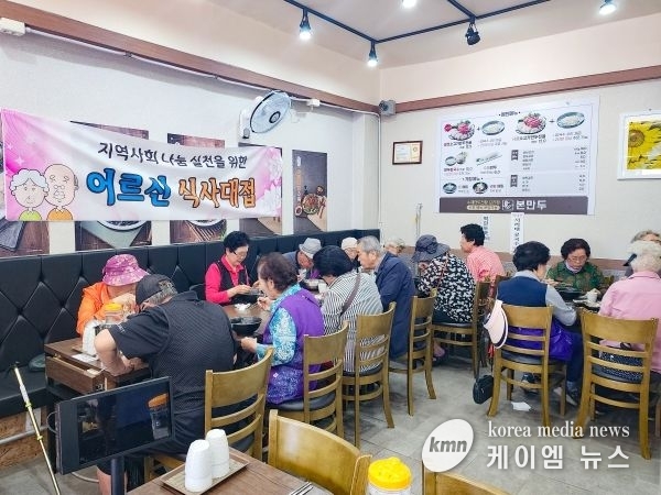 (케이엠뉴스) 의왕시 부곡동에 위치한 본만두 의왕점은 지난 29일 부곡동 어르신 30여명을 모시고 점심 식사를 대접했다.