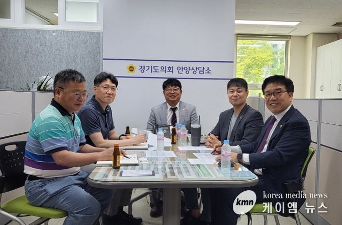 (케이엠뉴스) 경기도의회 김철현 의원(국민의힘, 안양2), 김재훈 의원(국민의힘, 안양4), 유영일 위원장(국민의힘, 안양5)은 7일 도의회 안양상담소에서 안양시 스마트도시정보과 관계자하고 스마트도시통합센터 업무관련으로 진행상황을 보고받기 위해 면담을 실시했다.