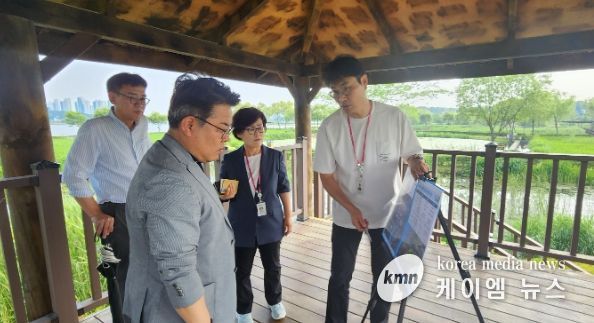 (케이엠뉴스) 김동구 한강유역환경청장이 10일 의왕시 왕송호수에 조성된 왕송습지(생태·연꽃·시범습지)를 찾아 현장 및 유지관리 상황을 확인했다.