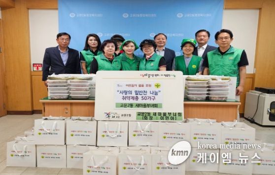 (케이엠뉴스) 구리시 교문2동 행정복지센터는 6월 11일 교문2동 새마을부녀회 주관으로 관내 독거 어르신들을 위한 ‘정성으로 만든 반찬 50세트 나눔 전달식’을 개최했다.