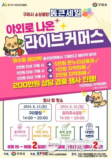 (케이엠뉴스) 구리시는 오는 6월 15일 구리광장과 16일(일) 장자호수공원에서 2일간 ‘야외로 나온 라이브커머스’ 행사를 개최한다.