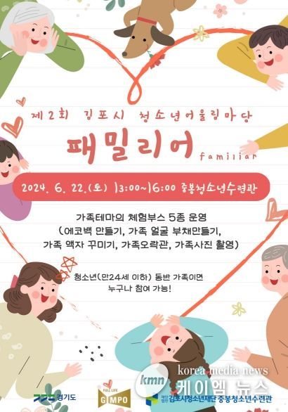 (케이엠뉴스) (재)김포시청소년재단 김포중봉청소년수련관에서 6월 22일 제2회 김포시 청소년어울림마당 ‘패밀리어’를 김포중봉청소년수련관에서 개최한다.