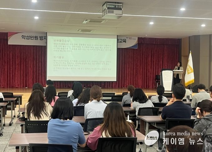이날 교육은 지난 5월 2일 개정 시행된 민원인의 위법행위 및 반복민원 대등 지침과 더불어 최근 증가하는 민원인의 위법행위로 신체적·정신적 피해를 겪고 있는 민원 공무원이 늘어남에 따라 담당 공무원의 민원 대응능력 및 민원 서비스 향상을 위해 마련됐다.