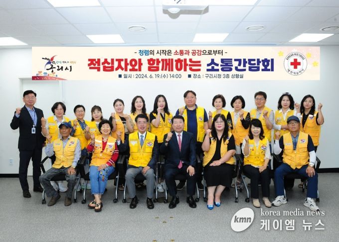 (케이엠뉴스) 구리시는 6월 19일 구리시청 3층 상황실에서 대한적십자사 봉사회 구리지구협의회(회장 김복조)와 적십자 주요 사업과 시정 현안 사항에 대한 의견을 공유하기 위한 소통간담회를 개최했다.