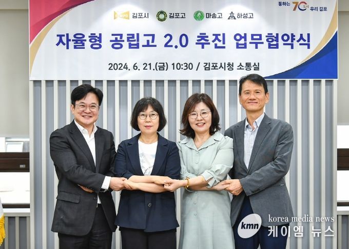 (케이엠뉴스) 김포시가 최근 연세대와의 교육 협력에 이어, 이번에는 관내 고등학교 경쟁력 향상에 뜻을 함께하고자 적극 나섰다. 시는 21일 김포고, 마송고, 하성고 등 관내 3개 고등학교의 자율형 공립고 2.0 공모 선정을 위한 협약을 체결했다.