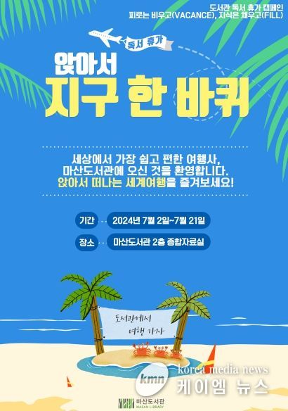 (케이엠뉴스) 김포시 마산도서관은 김포시 공공도서관 독서 휴가 캠페인 ‘피로는 비우고(VACANCE), 지식은 채우고(FILL)’ 추진에 따라 도서 전시 ‘앉아서 지구 한 바퀴’를 오는 7월 2일부터 21일까지 마산도서관 2층 종합자료실에서 운영한다.