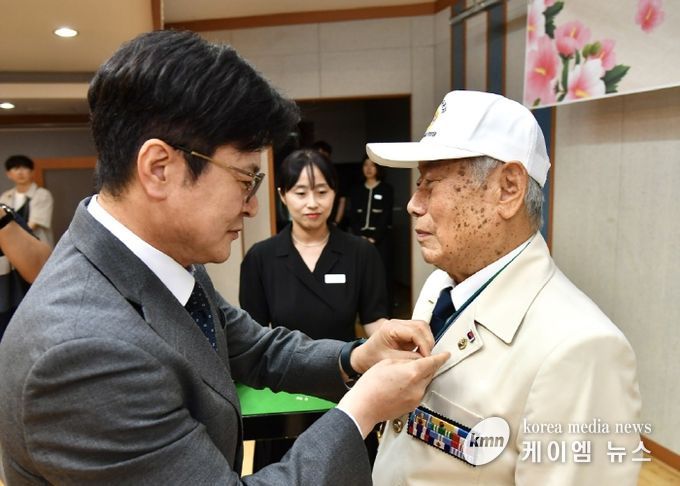 이어진 ‘끝까지 찾아야 할 태극기 배지’ 달기 행사에서 김병수 시장은 UN산하 8240부대 소속으로 참전하신 신재천용사, 육군 제1군단 소속으로 참전하신 김응선용사, 육군 6사단소속으로 참전하신 최성구용사, 간호장교로 참전하신 오세진용사, 치안국 기동대소속으로 참전하신 이준영용사 다섯분께 직접 달아드리며 감사와 존경을 표했다.