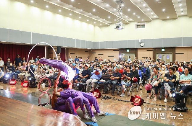 (케이엠뉴스) 의왕시 아름채노인복지관은 지난 26일 내손2동주민센터 대강당에서 ‘신나는 예술여행, 동춘서커스’ 공연을 개최했다.
