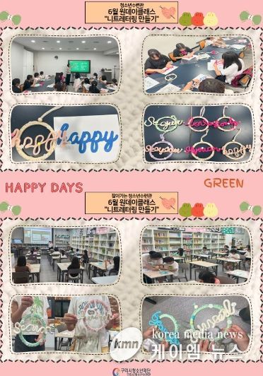(케이엠뉴스) 구리시청소년재단 청소년수련관은 관내 청소년들을 대상으로 환경보호 메시지를 담은 DIY 활동을 제공하고자 6월 22일과 6월 26일 ‘니트레터링 만들기’ 프로그램을 운영했다.