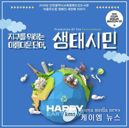 (케이엠뉴스) 인천광역시교육청화도진도서관은 생태시민교육과 연계한 마음두드림 캠페인 세 번째 이야기 ‘지구를 위하는 아름다운 단어, 생태 시민’을 7월 4일부터 9월 10일까지 인천시민을 대상으로 운영한다.