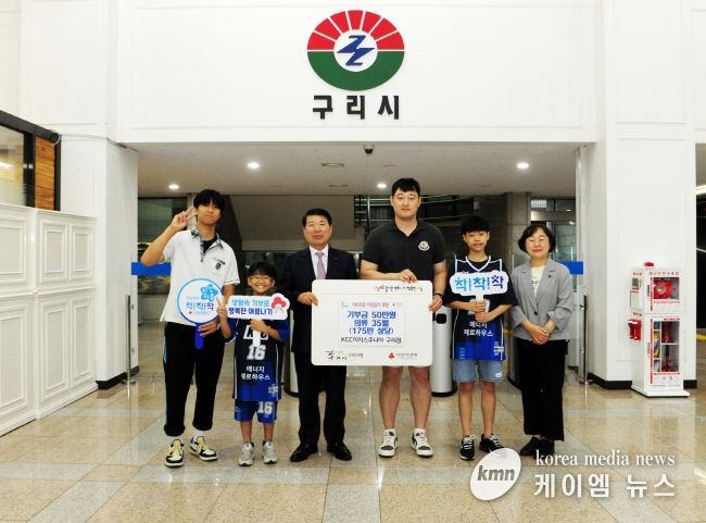 (케이엠뉴스) 구리시는 7월 2일 KCC 이지스 주니어 구리 농구 교실로부터 기부금 50만 원과 의류 35벌(175만 원 상당)을 전달받았다.