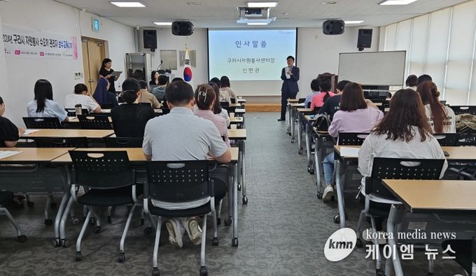 (케이엠뉴스) 사단법인 구리시자원봉사센터는 7월 4일 구리시행정복지센터 2층 다목적실에서 자원봉사 수요처 관리자 40여 명을 대상으로 보수교육을 실시했다.