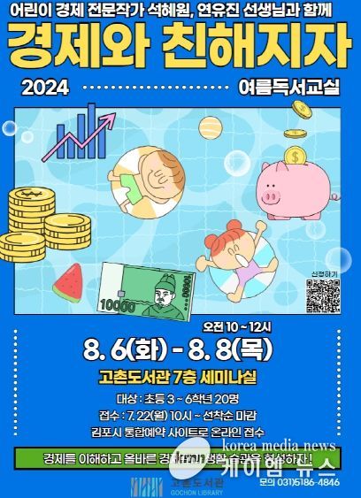 (케이엠뉴스) 김포시 고촌도서관이 여름방학을 맞아 8월 6일부터 3일간 2024년 초등학교 3~6학년 20명을 대상으로 여름 독서교실 ‘경제와 친해지자’를 운영한다고 밝혔다.