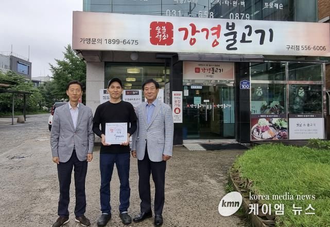 (케이엠뉴스) 구리시 수택3동 행정복지센터는 7월 8일 수택3동 지역사회보장협의체와 함께 관내 후원업체인 ‘강경불고기’를 방문해 ‘정♡나눔가게’ 현판 전달식을 가졌다.