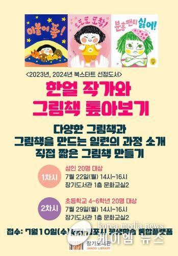 (케이엠뉴스) 김포시 장기도서관에서는 그림책 작가와 함께 그림책에 대하여 심도있게 알아보는 강의를 진행한다. 본 강의는 총 2회에 걸쳐 7월 22일과 29일 오후 2시부터 장기도서관 1층 문화교실2에서 진행될 예정이다.