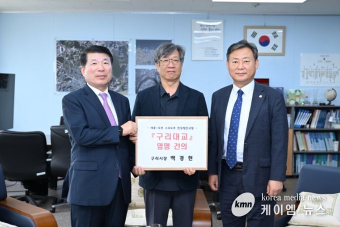 (케이엠뉴스) 백경현 구리시장은 7월 11일 신동화 구리시의회 의장과 함께 조우석 국토지리정보원장을 만나 세종~포천 고속도로상 33번째 한강횡단교량의 명칭을 반드시 ‘구리대교’로 명명해야 하는 당위성에 대해 적극 설명했다.