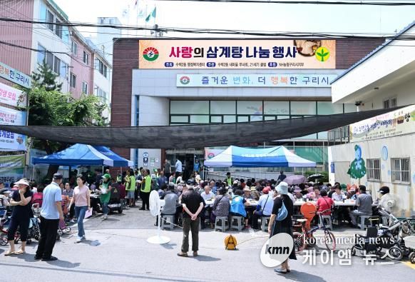 (케이엠뉴스) 구리시 수택2동 행정복지센터는 7월 11일 행정복지센터 앞마당에서 지역 어르신들을 모시고 "2024 사랑의 삼계탕 나눔 행사"를 개최했다.