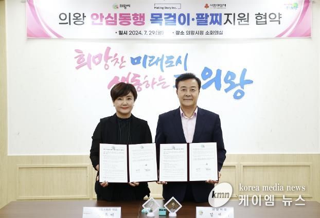 (케이엠뉴스) 의왕시는 29일 메이킹스토리와 취약계층 지원을 위한 ‘의왕 안심동행 목걸이·팔찌 지원’ 사업 업무협약을 체결했다고 30일 밝혔다.