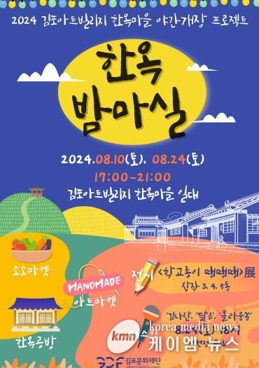 (케이엠뉴스) (재)김포문화재단은 8월 10일과 24일, 운양동 김포아트빌리지 한옥마을에서 여름 맞이 야간개장 프로젝트 '한옥 밤마실'을 진행한다고 밝혔다.