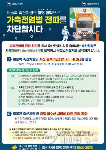 (케이엠뉴스) 김포시는 등록되지 않은 축산차량의 축산관계시설 출입에 의한 가축전염병 전파를 차단하기 위해 이번 달 31일까지 미등록 축산차량 자진 등록 기간을 운영한다고 밝혔다.