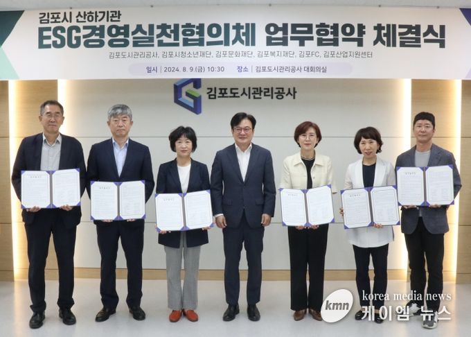 (케이엠뉴스) 민선8기 김포시가 시 산하 6개 공공기관이 시의 비전을 공유하고 같은 목표를 지향하고자 9일 ‘ESG경영실천협의체 협약’을 체결하고, 더 강화된 협력으로 김포시의 발전을 이끄는 데 뜻을 모았다고 밝혔다.