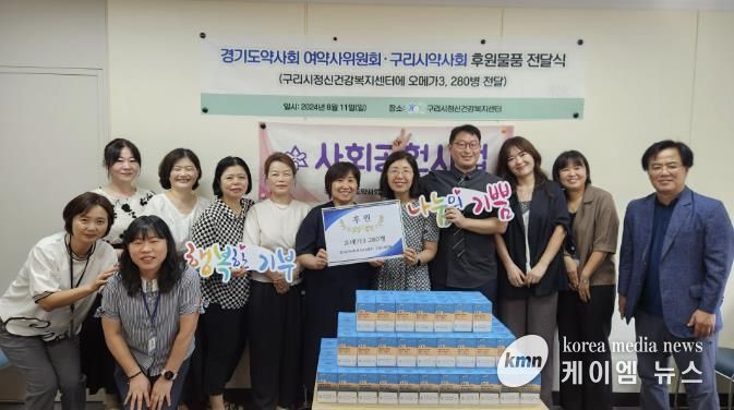 (케이엠뉴스) 구리시에서는 구리시정신건강복지센터가 8월 11일 경기도약사회 여약사위원회 구리시약사회로부터 영양제인 오메가3 280병을 후원받았다고 전했다.