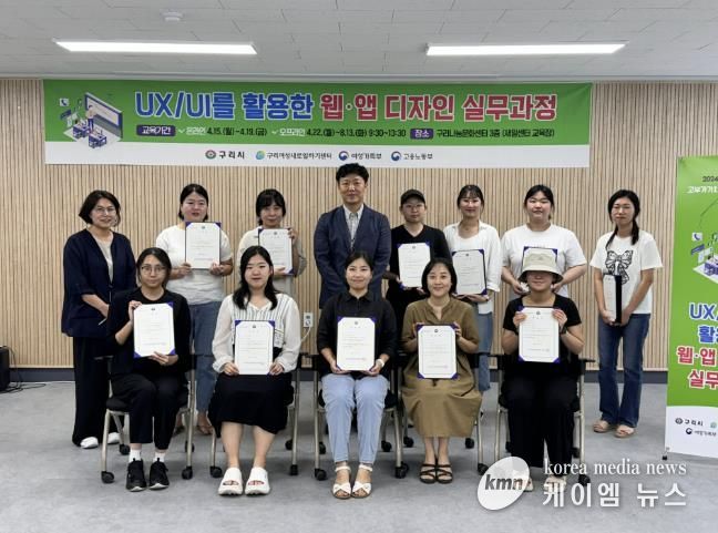 (케이엠뉴스) 구리시는 8월 13일 구리여성새로일하기센터에서 ‘UX/UI를 활용한 웹·앱 디자인 실무직업 교육 훈련’ 수료식을 개최했다.