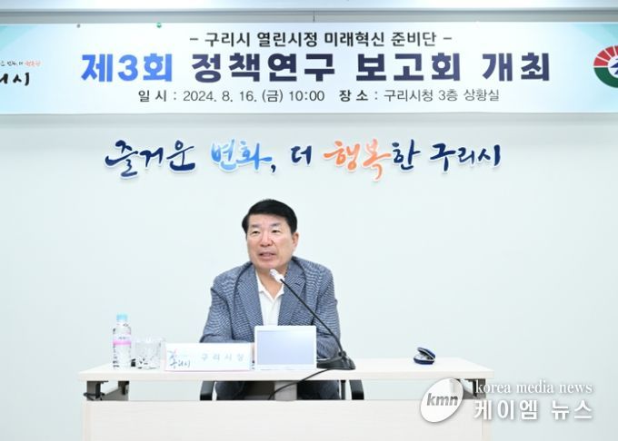 (케이엠뉴스) 구리시는 8월 16일 구리시청 3층 상황실에서 ‘구리시 열린시정 미래혁신 준비단’ 주최로 제3회 정책연구 보고회를 개최했다.