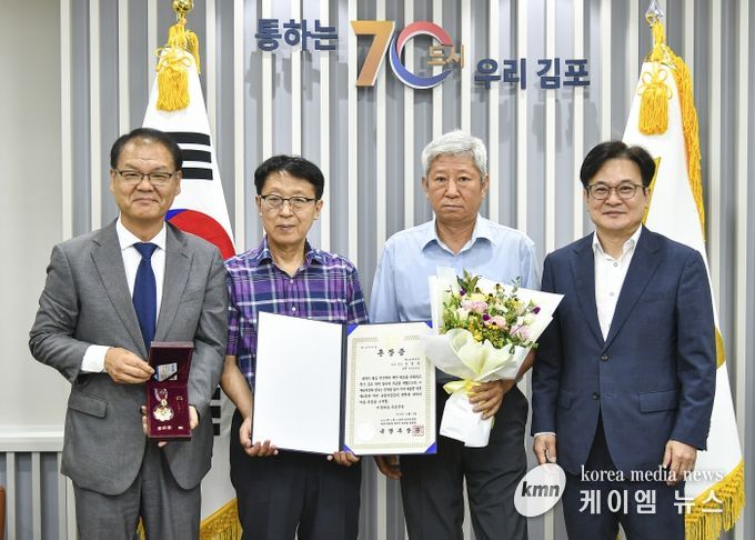 (케이엠뉴스) 김포시는 8월 22일, 6.25 참전유공자 故 김정북 병장의 조카 김종호씨와 독립유공자 故 강병진 선생의 아들 강성균씨에게 각각 화랑무공훈장과 대통령 독립유공자 표창을 전수했다. 특히나 이번에는 박용주 인천보훈지청장이 직접 방문하여 유공자와 유가족을 축하하는 뜻깊은 자리가 됐다.