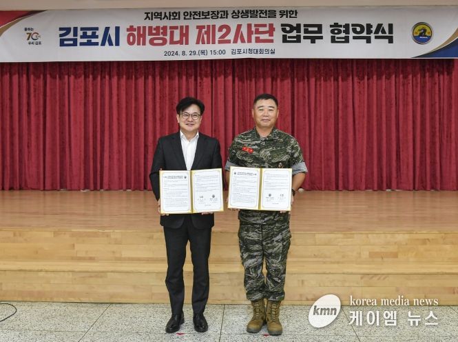(케이엠뉴스) 김포시와 해병대 제2사단이 29일 관·군 상생발전을 위한 협약을 체결하면서, 접경지역 군·관 상생발전협력체의 롤모델로 부상하고 있다.
