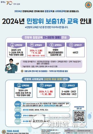 (케이엠뉴스) 김포시는 2024년 민방위대원 대상 하반기 보충교육을 실시한다.