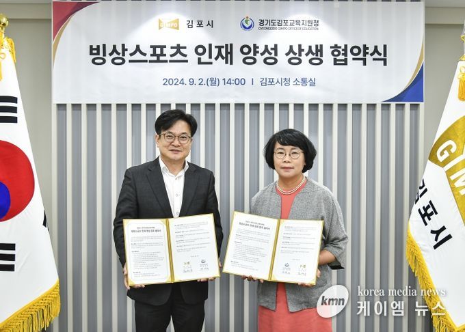 (케이엠뉴스) 대한민국 빙상 꿈나무의 산실로 나아가고 있는 김포시가 지난 2일 경기도김포교육지원청과 빙상스포츠 인재 양성을 위한 상생 협약을 체결했다. 이날 협약으로 또 한 번의 인적 인프라를 형성하며 김포시는 차근차근 대한민국 빙상 스포츠 도약으로 나아가고 있다.