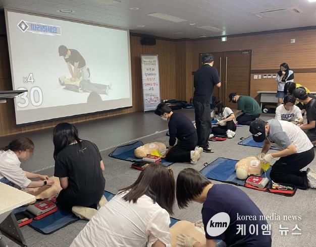 구체적으로 ▲안전조치 및 응급처치의 필요성 ▲심정지환자의 반응 확인 방법 ▲도움 및 119신고 요청 ▲성인 및 소아의 심폐소생술 방법 및 실습 ▲자동심장충격기 사용법을 포함한 심폐소생술 실습 및 전체순서 복기 ▲질의응답 및 추가설명 순으로 진행했다.