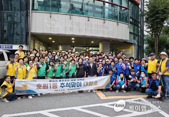 (케이엠뉴스) 의정부시 호원1동주민센터는 추석 연휴를 앞두고 9월 6일 통장협의회, 주민자치회 등 9개 자생단체 120여 명의 회원들과 함께 평화로변 구간(3km)과 호원천 주변에서 일제 대청소를 실시했다.