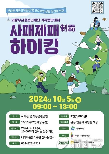 (케이엠뉴스) 의정부시청소년재단은 건강한 가족관계 증진 및 탄소중립 생활 실천을 위한 사패산 가족등반대회 ‘사패제패 하이킹’에 참여할 100가족을 오는 11일부터 온라인으로 선착순 모집한다고 밝혔다.