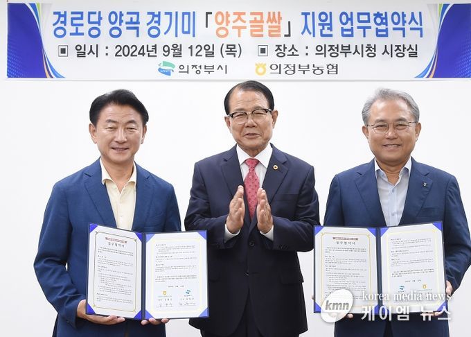 (케이엠뉴스) 의정부시는 9월 12일 의정부농업협동조합과 지역 쌀 소비 촉진 및 노인 복지 증진을 위한 ‘경로당 경기미(米) 양곡 지원 업무협약’을 체결했다.