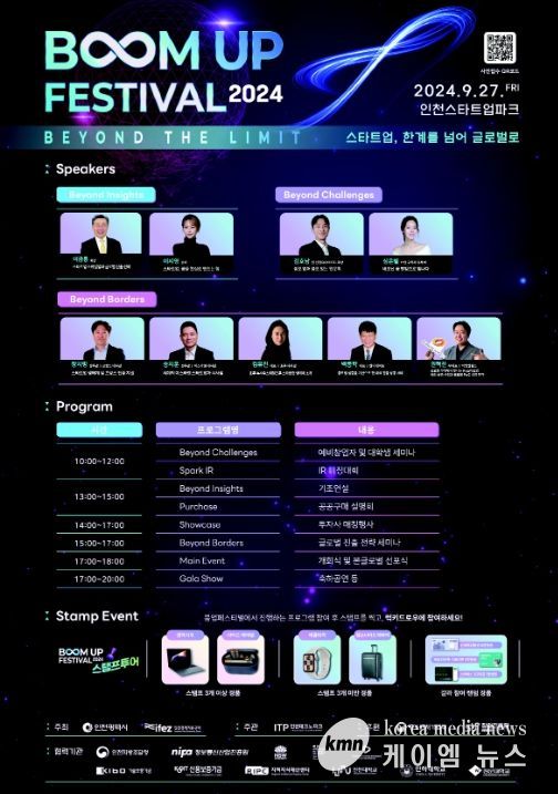 (케이엠뉴스) 인천경제자유구역청과 인천테크노파크는 오는 27일 인천스타트업파크에서 ‘붐업페스티벌 2024’를 개최한다고 밝혔다.