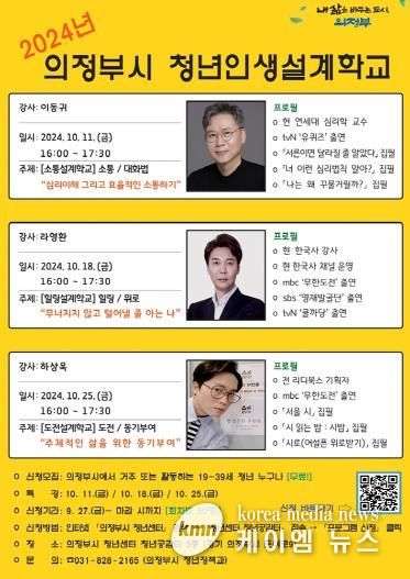 (케이엠뉴스) 의정부시는 10월 11일부터 3주간 의정부시 청년센터에서 ‘2024년 청년인생설계학교’를 운영한다고 밝혔다.