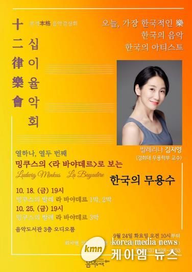 (케이엠뉴스) 의정부음악도서관은 10월 18일과 25일 이틀에 걸쳐 발레 ‘라 바야데르(La Bayadère)’ 영상 속 한국 무용수들의 활약을 감상하는 본격 음악감상 프로그램 ‘십이율악회(十二律樂會)’를 운영한다.